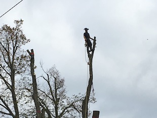 We have all of the necessary equipment to make sure the job is done safely. Sometimes we will be able to fell the tree using a few precision cuts at the base, but most commonly one of our climbers will dismantle the tree from a rope and harness. Where necessary we use rigging ropes to lower the sections of the tree so that we can be certain that no damage will be caused as they reach the ground.